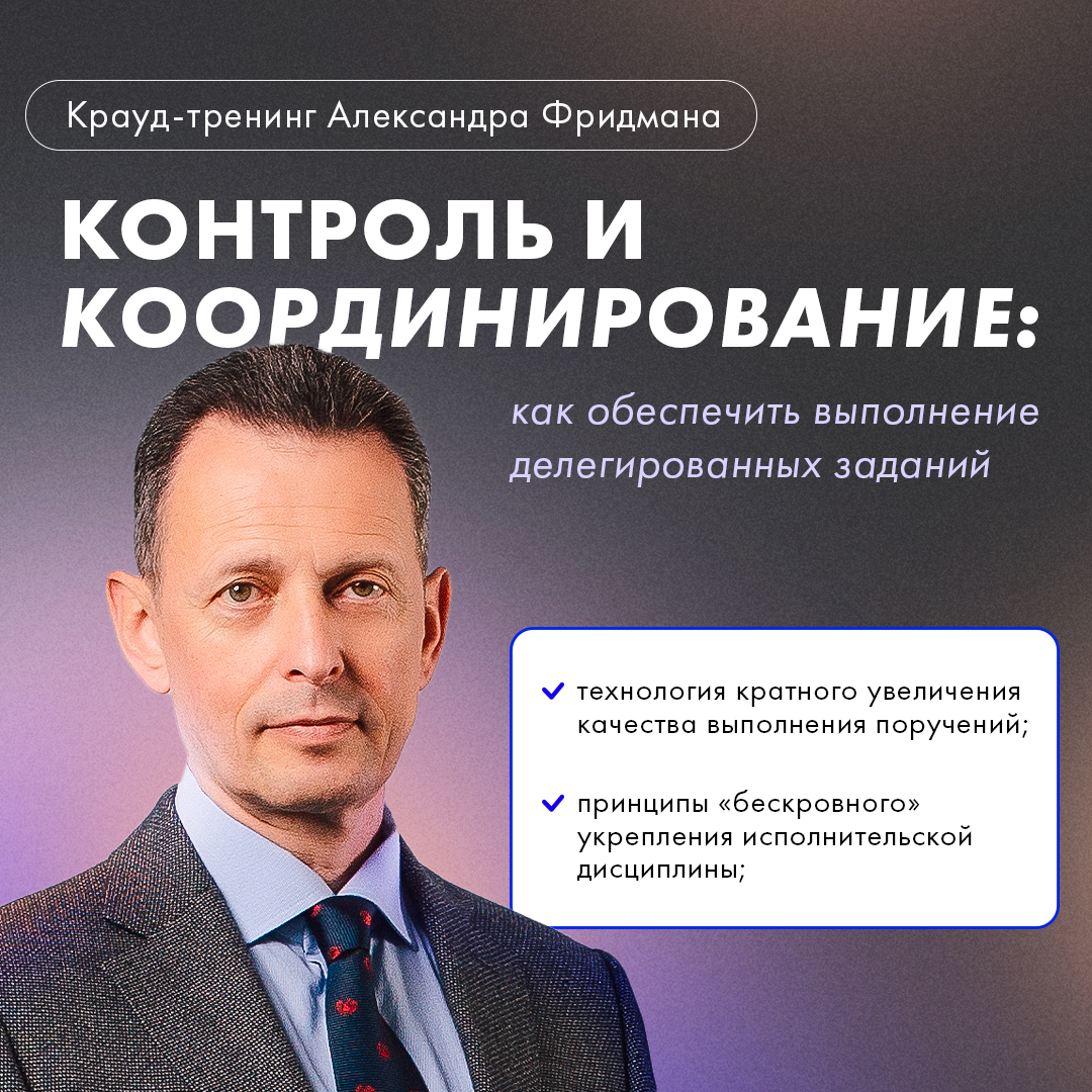 Крауд-тренинг Александра Фридмана "Контроль и координирование: как обеспечить выполнение делегированных заданий".